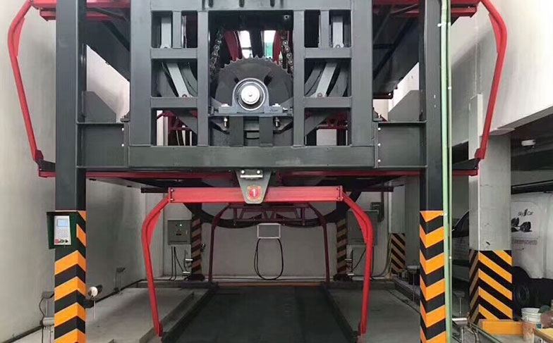 Motor drives the transmission mechanism with reducer; parking pallets/platforms are installed with regular intervals on the traction chain. When the motor starts, platforms rotate with the traction chain to facilitate parking and retrieving cars.